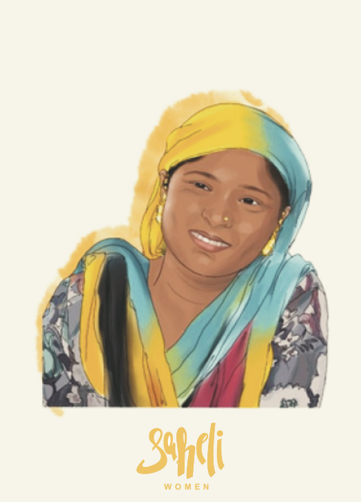 Nasibi is mother to 4 children. Her husband worked in the mining industry but due to severe injuries is not able to work anymore. She feels that is her responsibility to earn for her family now. A self-motivated queen, she says Saheli Women drives her to wake up early and finish all the house chores so that she can come to our centre to learn and work with the other ladies.